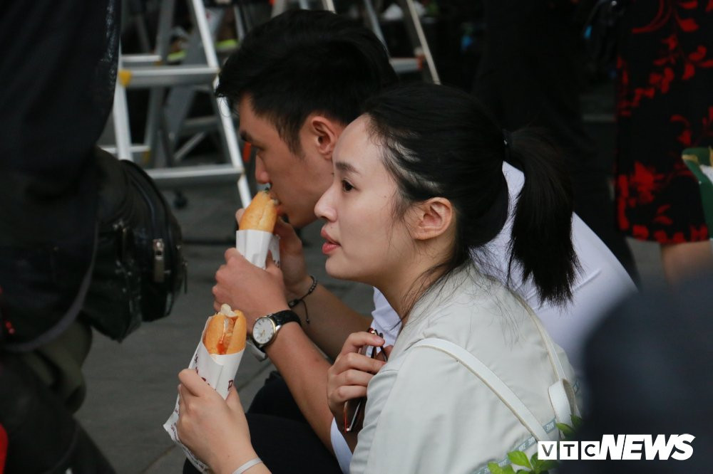 Đa số các phóng viên có mặt rất sớm để "đặt chỗ" nên chưa kịp dùng bữa sáng.