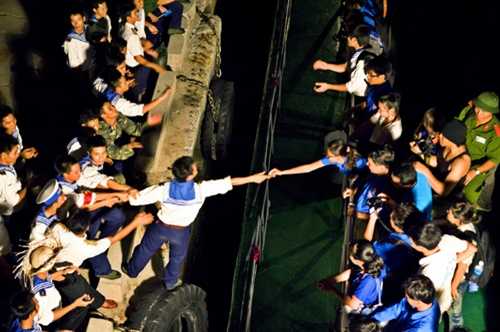 | Lưu luyến chia tay trên cầu cảng. |