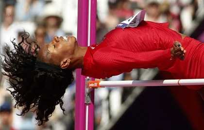 | Vận động viên người Mỹ Brigetta Barrett "nín thở" trong phần thi nhảy cao tại Sân Vận động Olympic trong khuôn khổ Thế Vận hội Mùa hè ở thủ đô London, Anh |