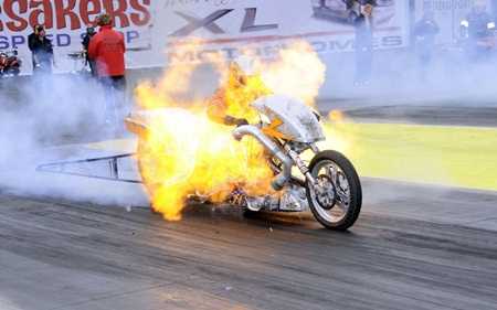 | Người chụp bức ảnh này đã may mắn tránh được ngọn lửa khi chiếc xe phát nổ do lỗi của tay đua Greger Johansson khi đốt lốp chiếc xe của mình |