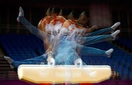 | Bức ảnh kì ảo về việc luyện tập của vận động viên thể dục dụng cụ Louis Smith đoàn thể thao Anh chuẩn bị cho Olympic London 2012 |