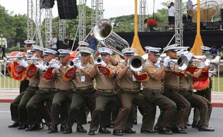 | Buổi tập kèn của các binh sĩ lính thủy đánh bộ Philippines chuẩn chị cho lễ chào mừng ngày độc lập của đất nước |