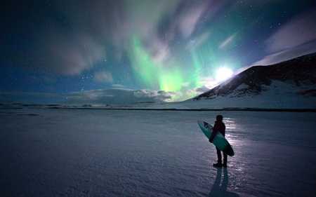 06/08/2012 07:20:00 +07:00(VTC News) - Hình ảnh người đàn ông cầm ván lướt sóng lặng lẽ nhìn cực quang phương Bắc trên bầu trời Hofn, Iceland được xem là ấn tượng nhất hôm nay.