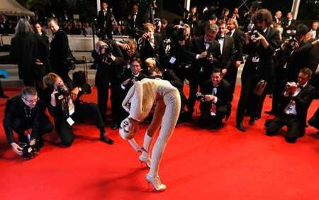 | Nghệ sĩ uốn dẻo trước ống kính phóng viên trên thảm đỏ Liên hoan phim Cannes, Pháp |