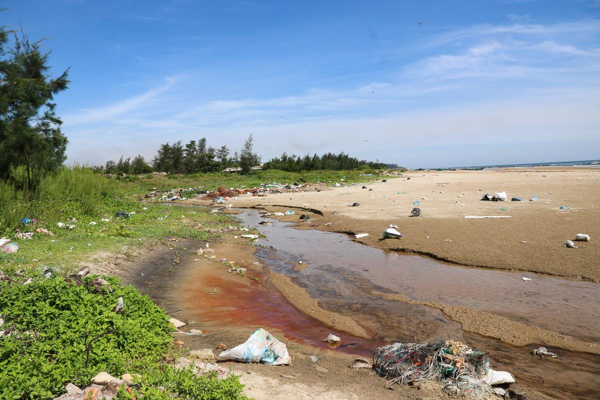 Rác thải từ các khu dân cư theo các con lạch, trôi dạt ra bờ biển tạo ra cảnh tượng hết sức nhếch nhác, phản cảm.
