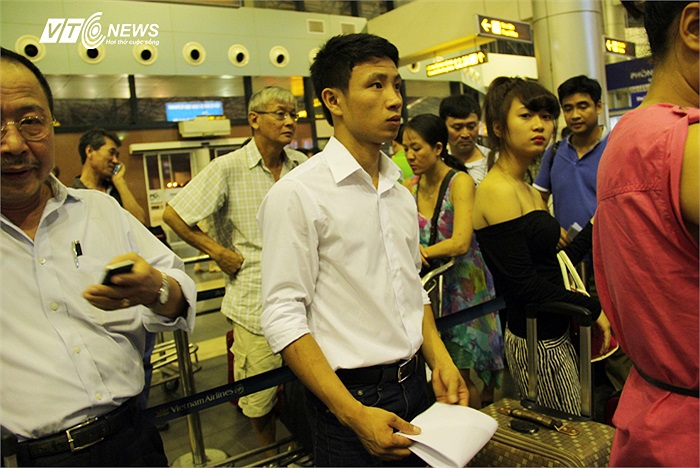 Vũ Xuân Tiến hồi hộp khi chờ làm thủ tục tại sân bay Nội Bài.