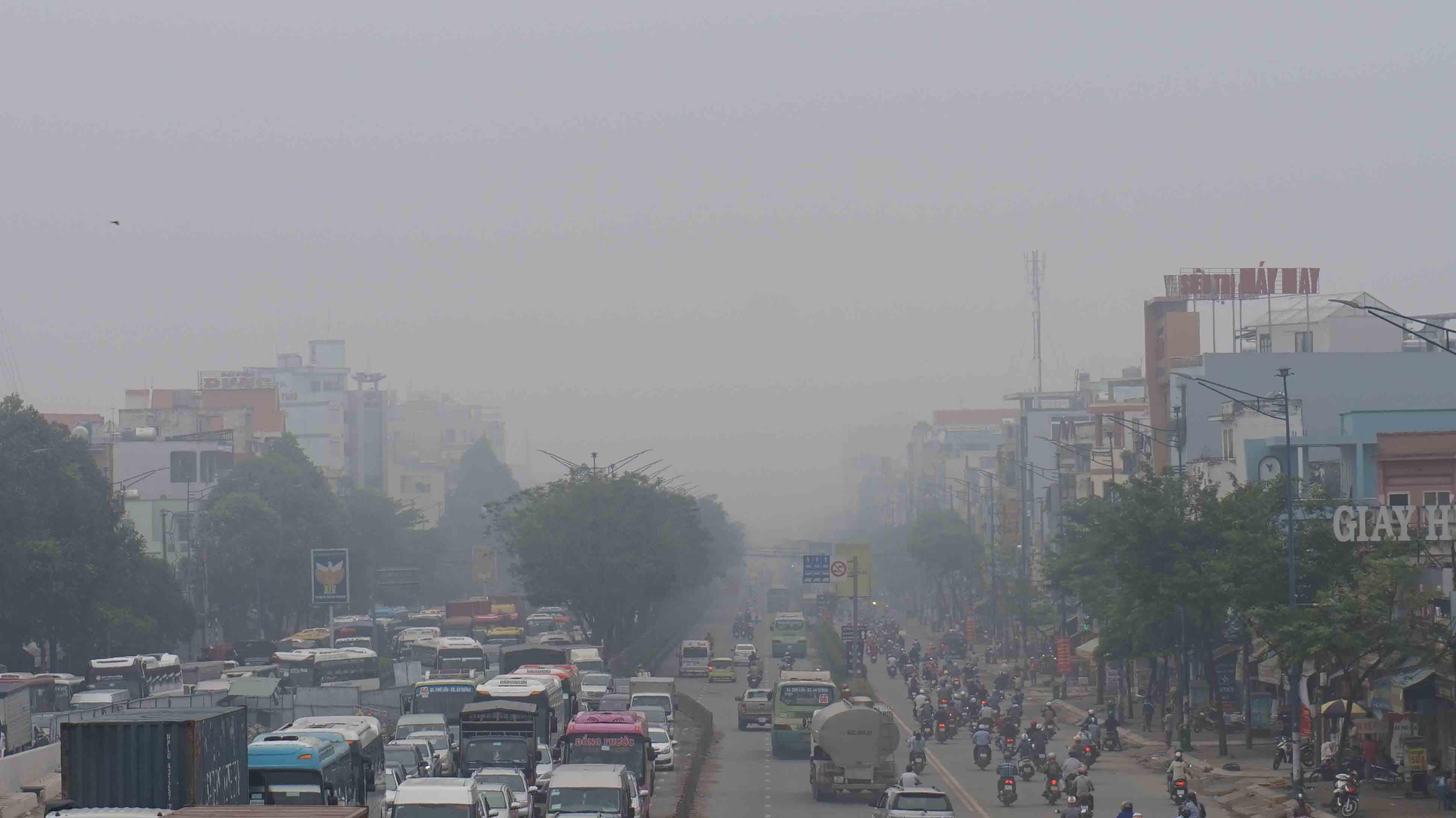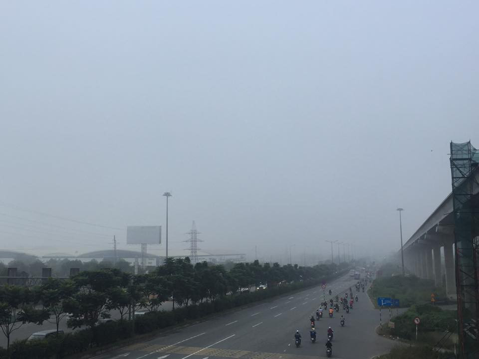 Hình ảnh Xa lộ Hà Nội chìm trong sương mù. (Ảnh: Đoàn Quý)