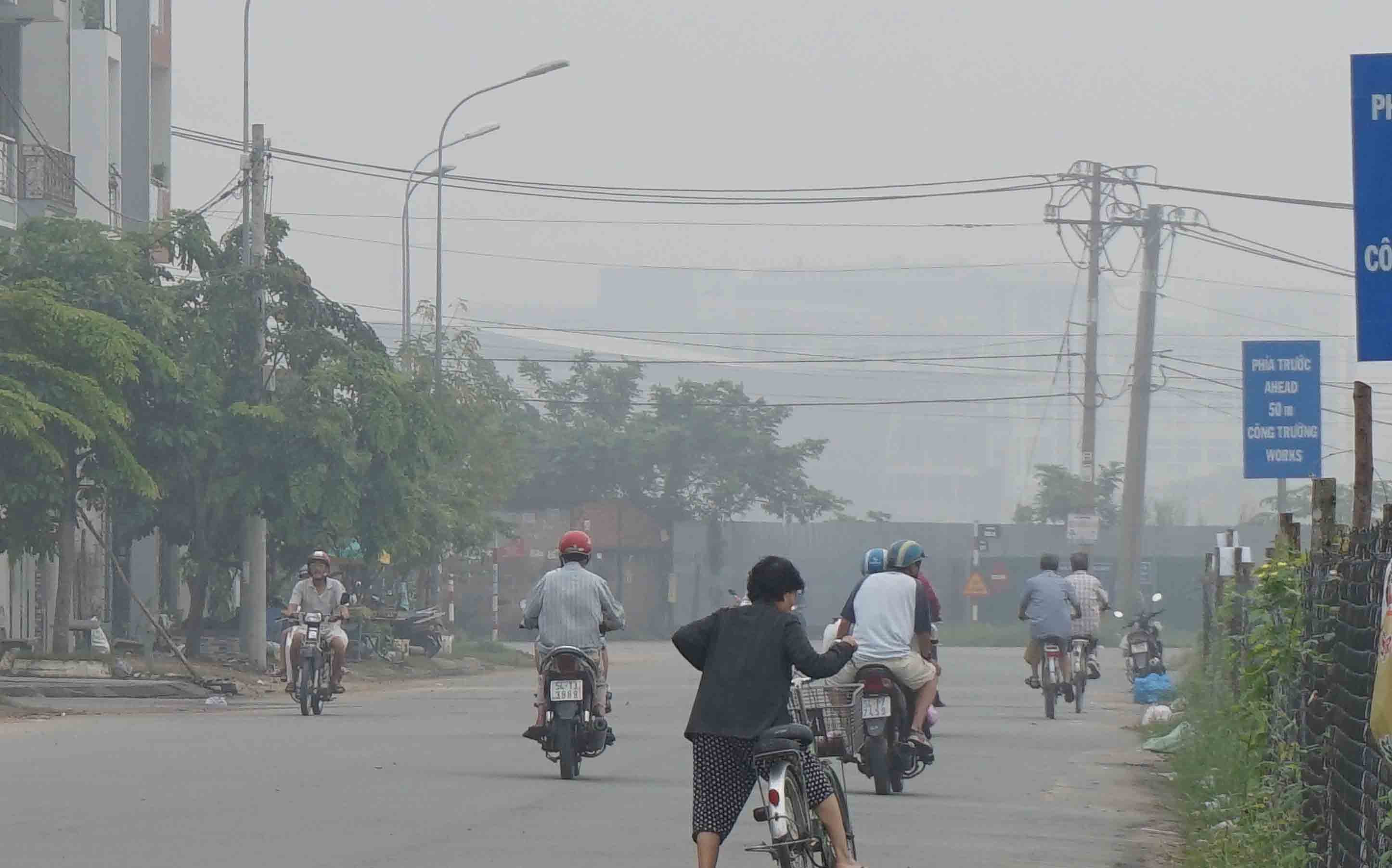 Khu dân cư ở quận 2 chìm trong sương mù. (Ảnh: Minh Chánh)