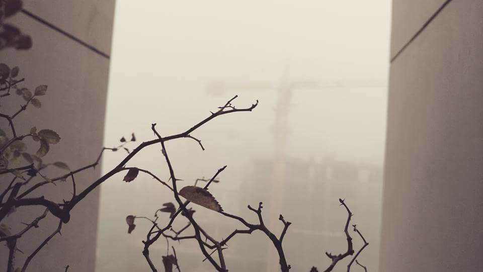 Khu dân cư ở quận Gò Vấp ẩn sau lớp sương mù dày đặc. (Ảnh: Hồ Phương Dung)