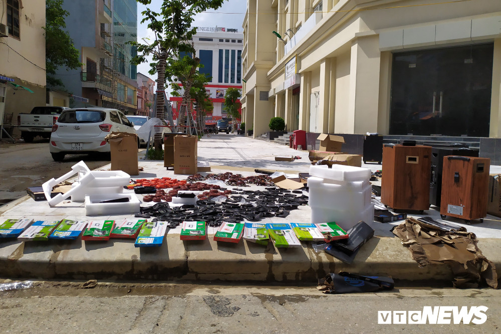 Các linh kiện, thiết bị điện tử được phơi trên vỉa hè.