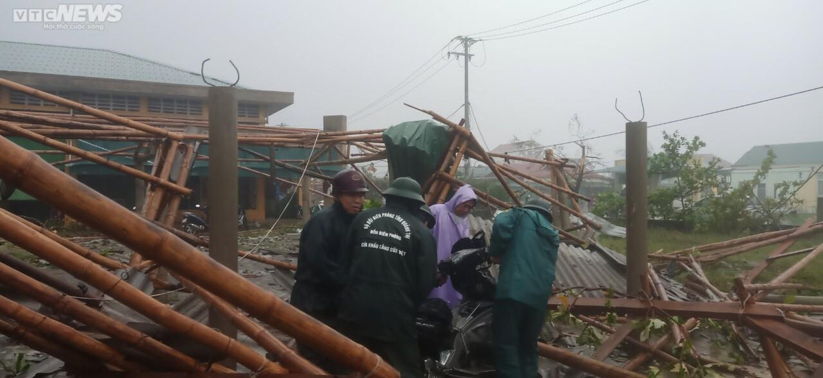 Người dân địa phương cho biết, khoảng 15h20, đi kèm với cơn mưa lớn là một luồng gió mạnh quét qua. Trong thời gian ngắn, gió lớn khiến phần mái ở chợ thị trấn Cửa Việt và nhiều ngôi nhà bị tốc, biến dạng.