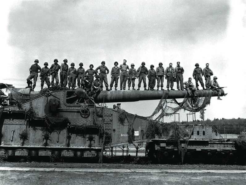 Hình ảnh thể hiện kích thước khổng lồ của siêu pháo Phát xít Đức