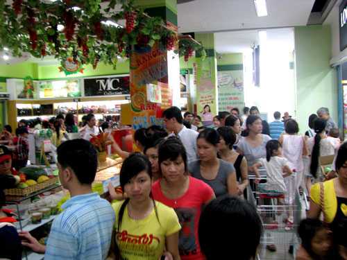 Hàng hóa tại siêu thị được áp dụng chương trình khuyến mại lớn với hầu hết các sản phẩm đã thu hút lượng lớn khách hàng. Nhu cầu mua sắm trong đợt nghỉ lễ dài tăng lên khiến siêu thị xảy ra tình trạng quá tải