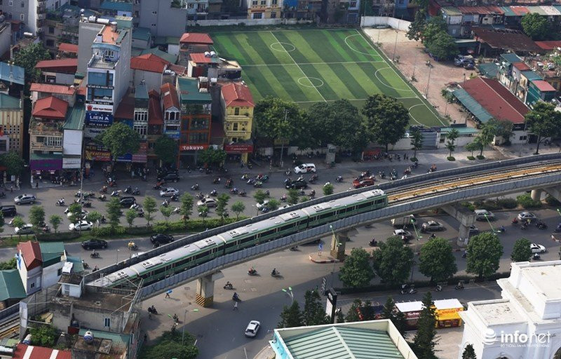 Tàu đường sắt Cát Linh chạy qua nút giao thông 4 tầng duy nhất tại Hà Nội.