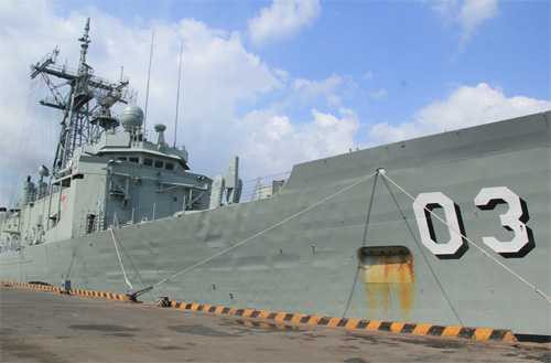 | Tàu hộ vệ tên lửa HMAS Sydney cập Cảng Sài Gòn chiều 29/10 |