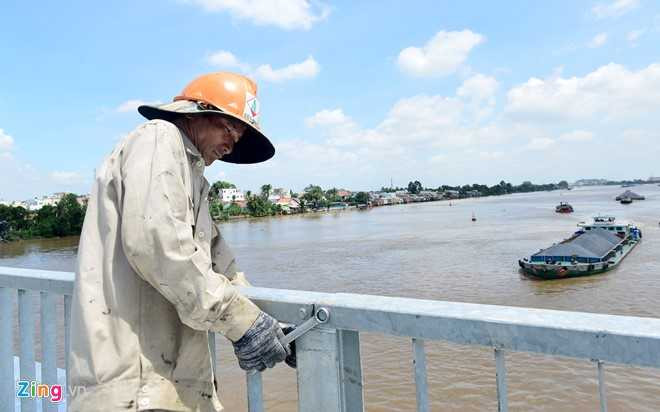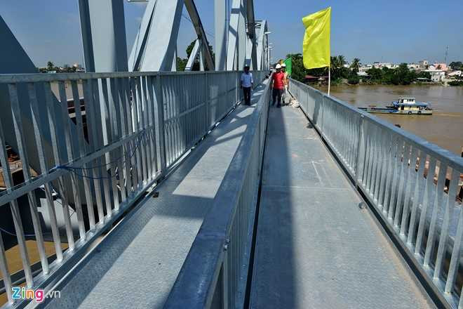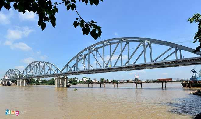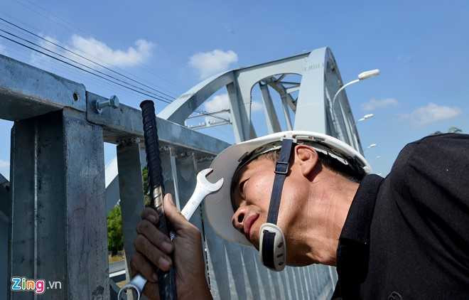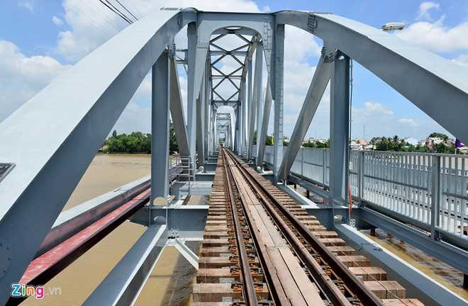 Kiểm tra đường ray, tà vẹt và hệ thống ốc vít. Công trình này có độ cao dọc đỉnh ray lên khoảng 2,2 m, đáp ứng tĩnh không thông thuyền cấp 3 (cao hơn 3 m so với tĩnh không thông thuyền cầu cũ).