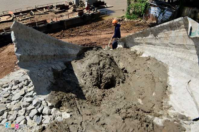 Hoàn thiện những mảng bờ kè cuối cùng ở hai bên mố cầu.