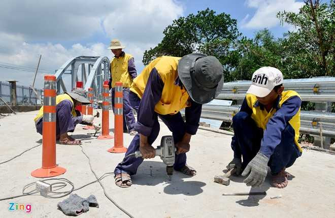 Lắp dải phân cách đường dẫn cho xe cộ qua cầu.