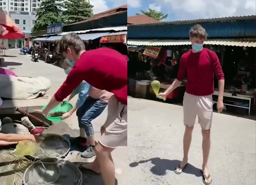 Chàng Tây quá am hiểu mánh khóe bán hàng của các bà bán tôm ở chợ nên có cách đối phó, khiến bà chủ bó tay.