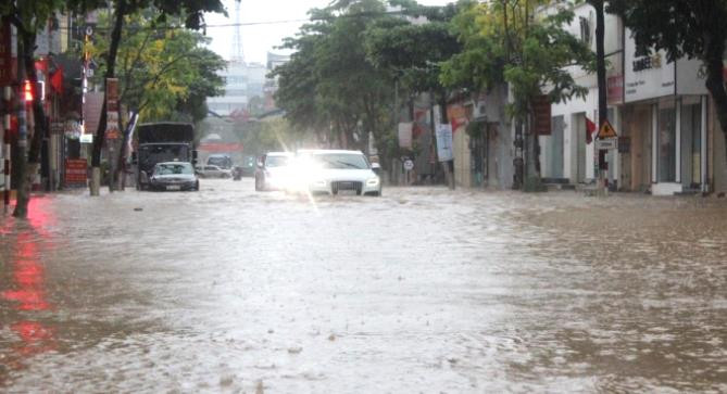 Mưa lớn kéo dài trong nhiều giờ đồng hồ từ đêm qua đến sáng 7/6 làm nhiều tuyến đường của thành phố Sơn La, như đường Trường Chinh, Giảng Lắc, Trần Đăng Ninh... ngập trong biển nước.