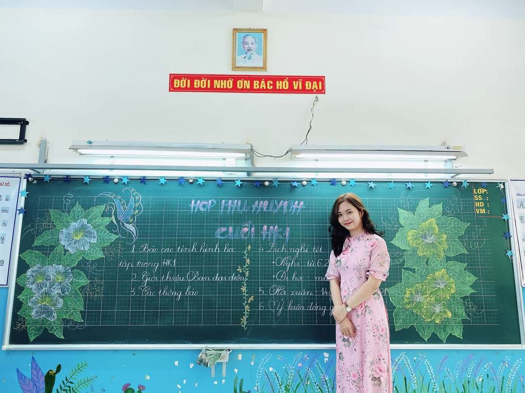 Chiêm ngưỡng tác phẩm và người tạo nên tác phẩm, nhiều người trầm trồ cô giáo đúng là đẹp cả người, cả nết.
