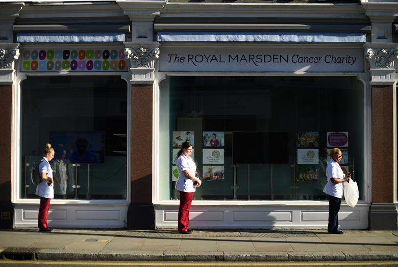 Các y tá xếp hàng ăn trưa ở London, Anh. (Ảnh: Reuters)