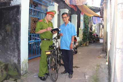 | Hình ảnh các chiến sỹ cảnh sát khu vực công an phường Thanh Bình đi xe đạp đến với từng hộ dân đã trở nên quen thuộc với người dân nơi đây. |
