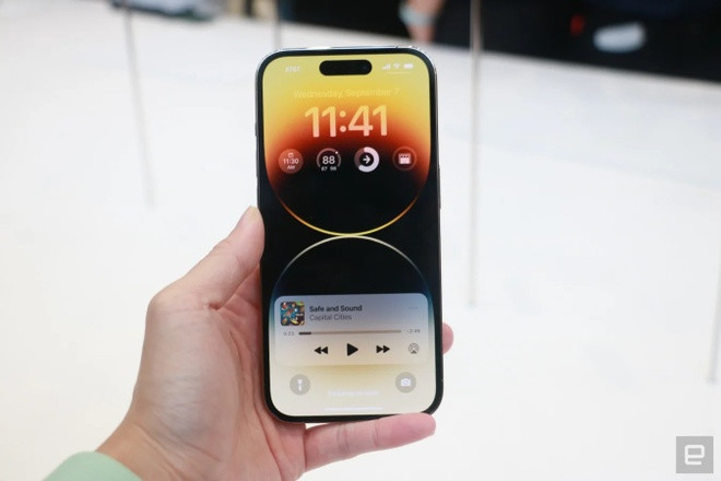 Trong khi đó, hai chiếc iPhone 14 Pro/Pro Max nhận được nâng cấp lớn ở mặt trước. Sản phẩm sở hữu cụm FaceID tích hợp trong phần khuyết dạng "viên thuốc", chiếm ít không gian hơn trong màn hình. (Ảnh: Engadget)