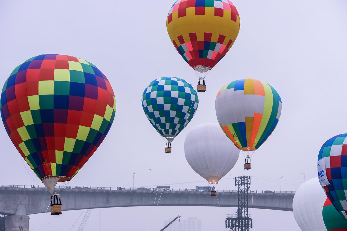 Các khinh khí cầu to lớn đa sắc màu đẹp đẽ bay lên cao như những đóa hoa xuân nở rộ lộng lẫy giữa bầu trời thủ đô. Đây là lần đầu tiên ở Việt Nam sử dụng bay cùng lúc nhiều khinh khí cầu nhất để tạo nên hình ảnh đẹp mắt phục vụ công chúng đến xem.
