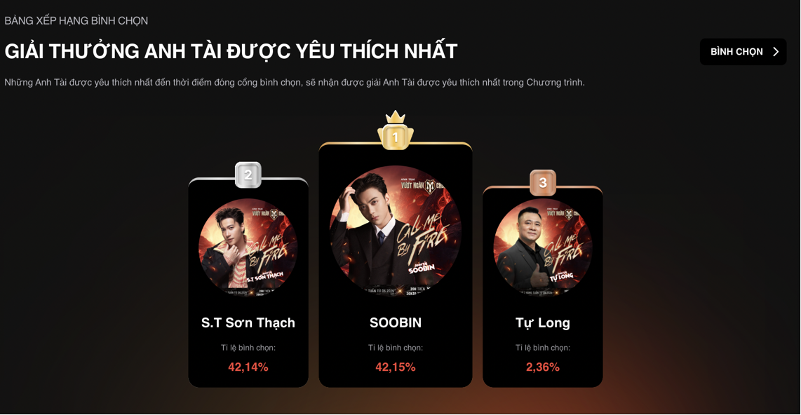 Bảng xếp hạng Anh Tài được yêu thích nhất.