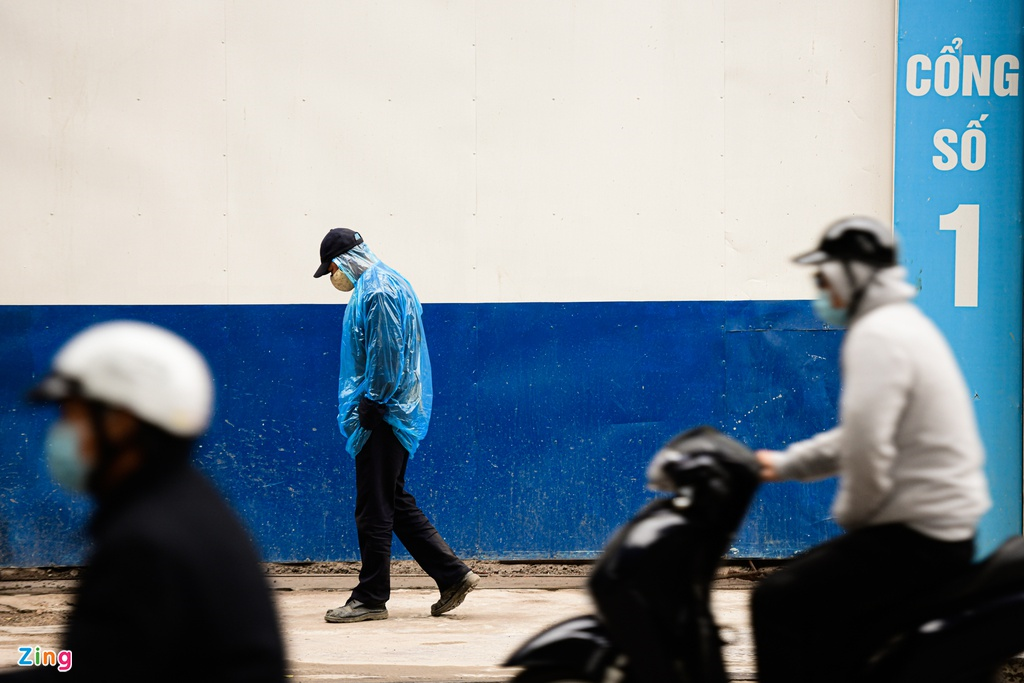 Anh Nam là bảo vệ nên phải đứng ở ngoài đường cả ngày. "Chiếc áo mưa này tôi mặc đi làm từ sáng, đứng đây gió lạnh quá nên mặc luôn, chắc tôi sẽ giữ nó cả ngày. Những năm trước trời lạnh hơn tôi vẫn chịu được", anh cho hay.