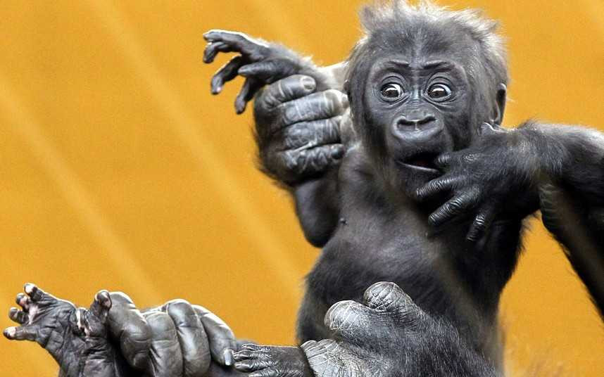 con đười ươi non ở công viên tự nhiên Cabarceno, Tây Ban Nha ngơ ngác trong vòng tay mẹ