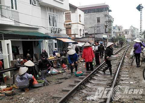 Bên cạnh đó còn là những hành động vi phạm hành lang an toàn đường sắt qua khu đông dân cư khi nhiều chợ cóc, chợ dân sinh vô tư mọc lên ngay bên cạnh đường ray.