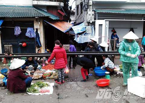 | Chợ cóc họp bên cạnh đường ray tại khu vực Cổ Nhuế - Hà Nội |