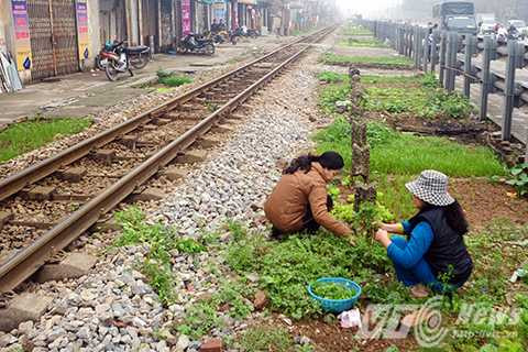 | Nhiều người còn tận dụng trồng rau ngay trong hành lang an toàn đường sắt |