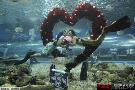 Ngày 11/2, một cặp đôi trao nhau nụ hôn dưới nước để kỷ niệm ngày Valentine ở Manila, Philippines