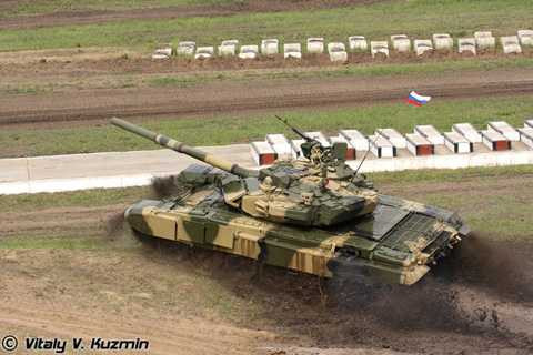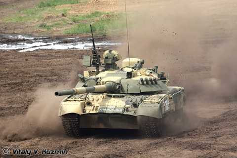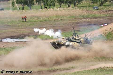 | Xe tăng chủ lực T-90 hành tiến trên địa hình khác nhau tại triển lãm năm 2009. |