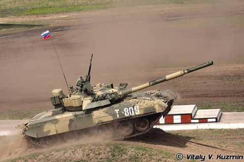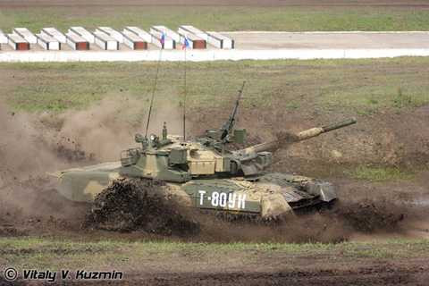 | Xe tăng chủ lực T-80U phi nước đại. |