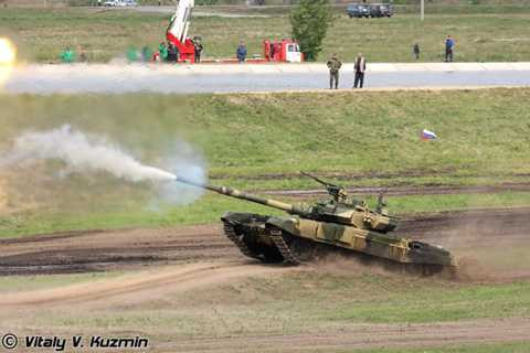 | T-90A khai hỏa pháo chính đầy uy lực. |