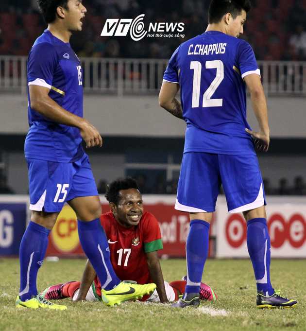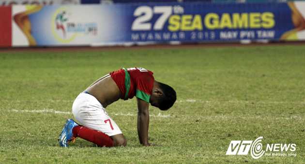 | Nỗi thất vọng của Lestaluhu khi tiếng còi mãn cuộc vang lên. Trận đấu kết thúc với tỷ số 1-0 nghiêng về U23 Thái Lan. |
