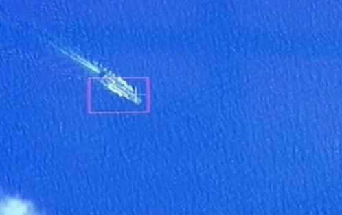 Hình ảnh ghi lại được trên biển khá rõ nét. Trong ảnh là một tàu đang hoạt động trên biển.