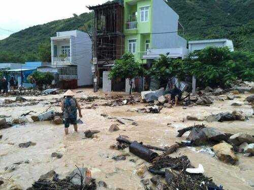 Nhiều trường học, bệnh viện cùng nhà dân trong thành phố bị ngập sâu. Nhiều đoàn tàu lửa đang mắc kẹt tại Khánh Hòa do mưa lớn làm sạt lở nghiêm trọng, đất đá đổ xuống gây tắc nghẽn đường sắt.