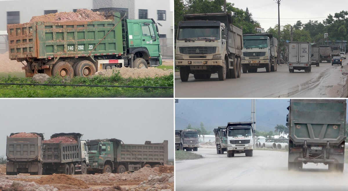 Khi chạy ngoài đường, những chiếc xe này đều phủ bạt, tuy nhiên khi vào đến dự án chuẩn bị đổ đất mới lộ ra những khối đất đá mà nó cõng trên mình đều vượt quá thành thùng xe.