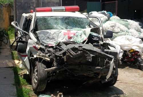 Theo quan sát, chiếc xe cứu thương bẹp dúm phần đầu sau vụ tai nạn, bung túi khí. Phía sau khoang dành cho bệnh nhân, ghế và dụng cụ y tế bị lật tung.