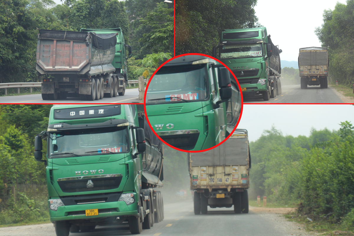 Đặc biệt, những chiếc xe tải "4 chân", mang logo “CSMT” có dấu hiệu cơi nới thành thùng, chở hàng cao chót vót xuất hiện dày đặc tại tuyến Quốc lộ 15A hướng về Ngã ba Khe Giao (huyện Can Lộc) sau khi rời đường mòn Hồ Chí Minh.