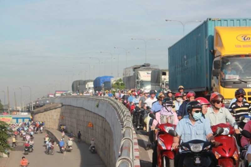 | Ùn tắc giao thông nghiêm trọng trên quốc lộ 1A (Ảnh Phạm Nguyễn) |