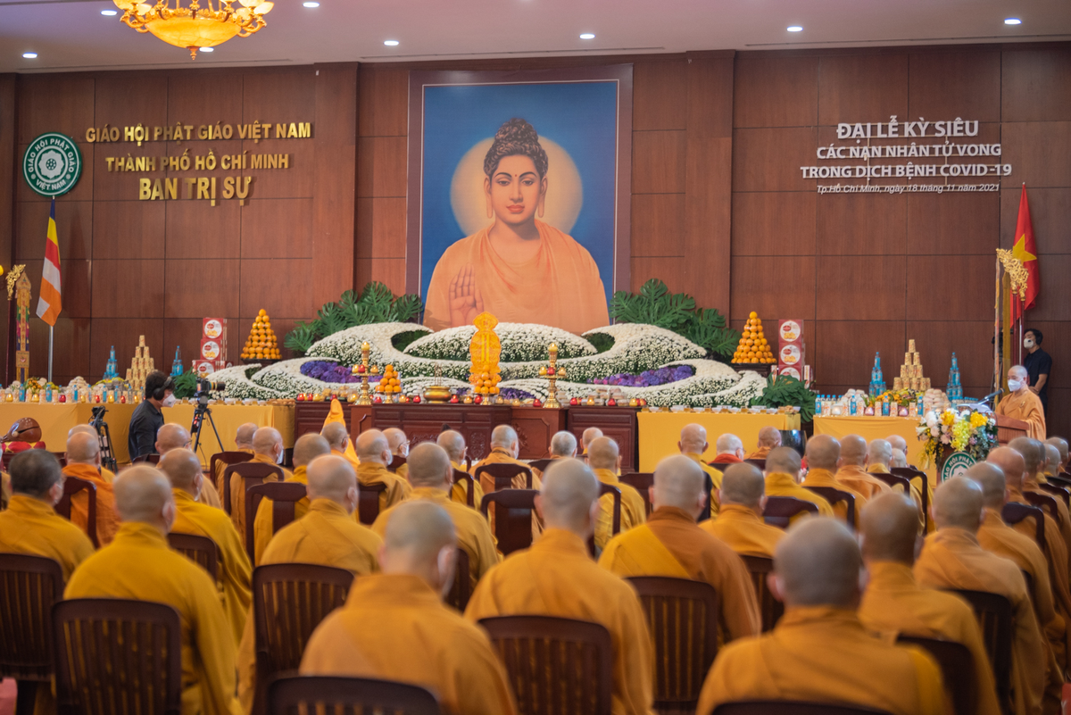 Ngày 18/11, Hội đồng Trị sự Giáo hội Phật giáo Việt Nam văn phòng 2 Trung ương và Ban Trị sự Giáo hội Phật giáo Việt Nam TP.HCM đồng tổ chức đại lễ kỳ siêu người qua đời vì COVID-19, tại Việt Nam Quốc tự (quận 10, TP.HCM).