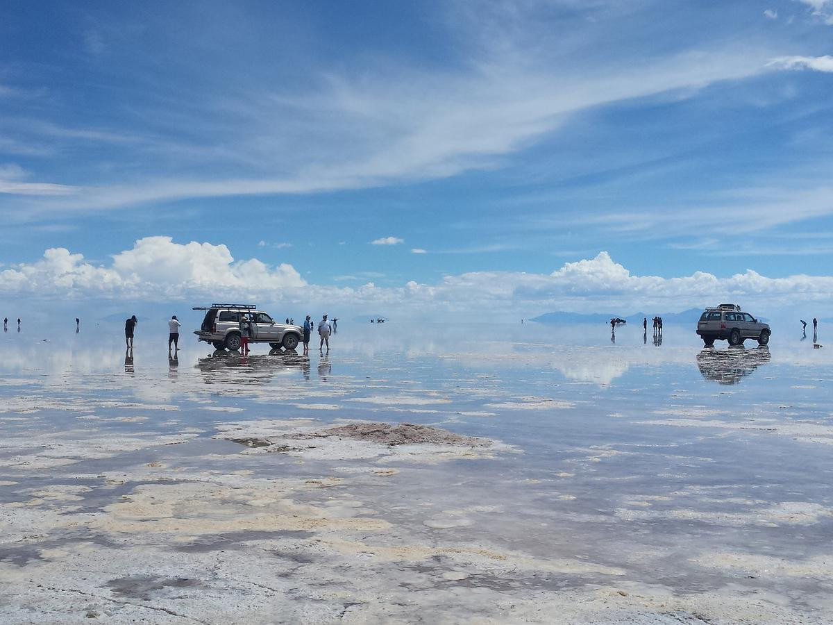 Một điểm đặc biệt của cánh đồng muối Salar de Uyuni là khả năng tạo ra hiệu ứng quang cảnh rất thú vị. Vào mùa khô, cánh đồng phủ hoàn toàn bằng muối khô, dễ dàng cho xe cộ di chuyển qua lại.