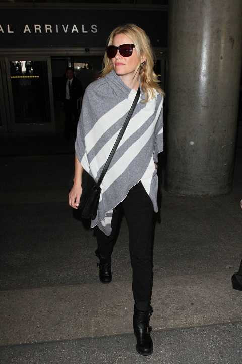 | Elizabeth Banks thể hiện gu thời trang sành điệu với áo khoác dạng chăn tại sân bây LAX. Thời gian này, cô phải di chuyển rất nhiều để quảng bá cho bộ phim "Hunger Games: Mockingjay" phần 2. |