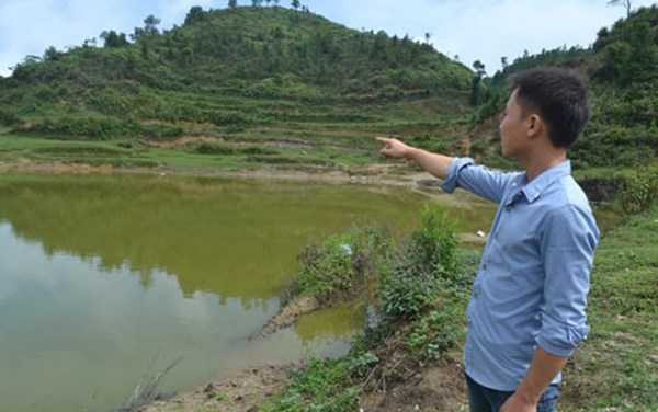 | Đinh Văn Kim, cán bộ văn hóa xã Đản Ván đang giới thiệu về “ao thần” |